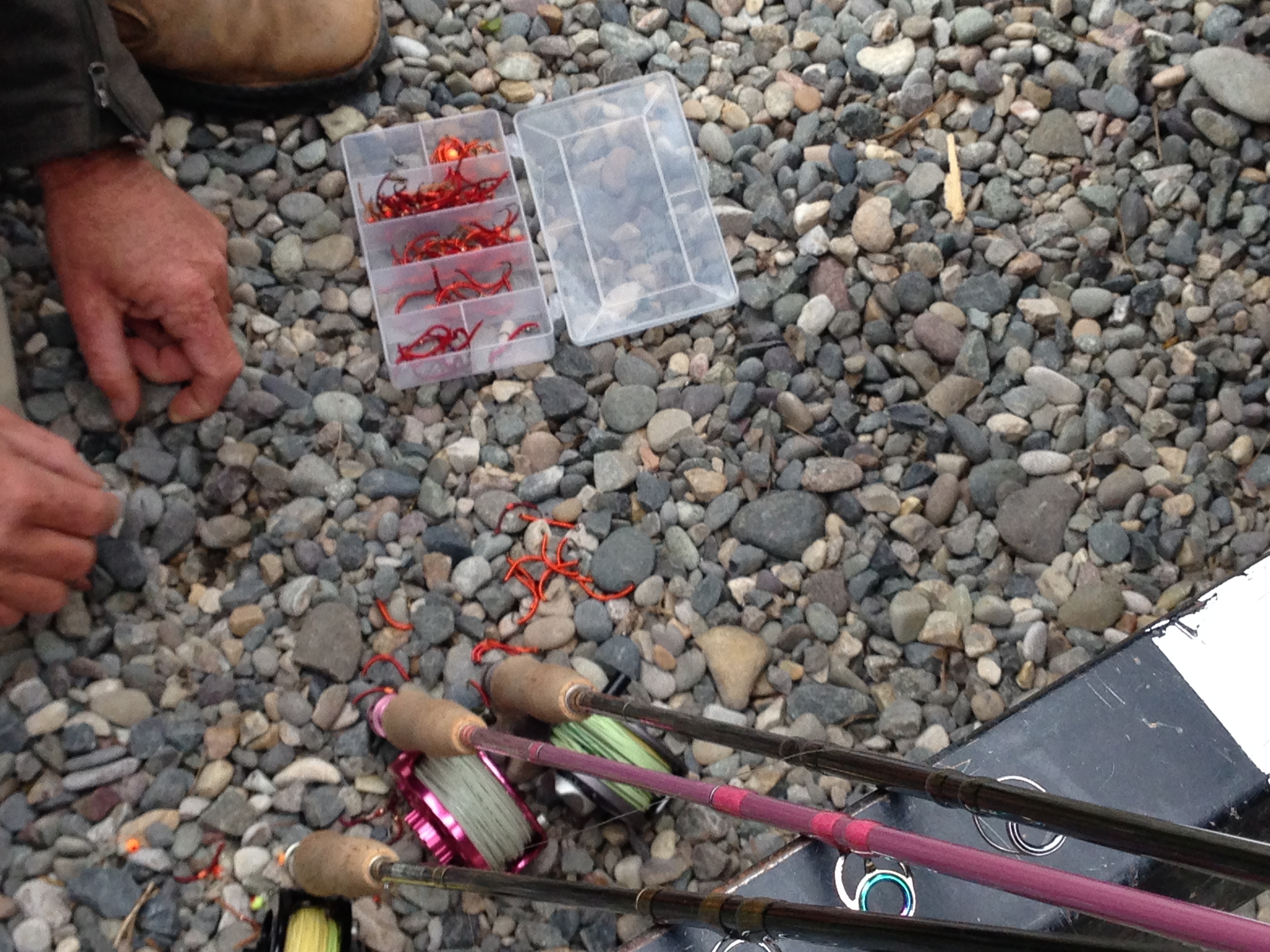 Digging up worms. And check out the awesome Casting for Recovery Fly Rod and Reel!